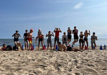 Vasarā mēs slīpējam līdzsvaru, ātrumu un spēku ar skrituļslidošanu, fiziskās sagatavotības nodarbībām, spēlēm un koordinācijas vingrinājumiem.