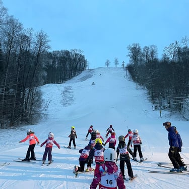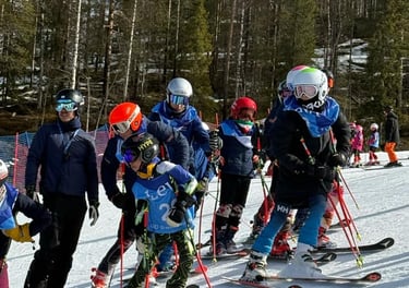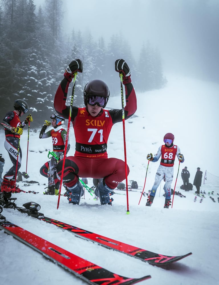 Ziemā fokusējamies uz kalnu slēpošanu – treniņi uz kalna, sacensības un tehnikas pilnveide.